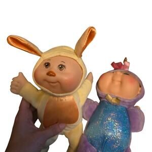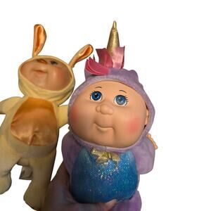 Adorable Cabbage Patch Kids Cuties Fantasy Friends dolls! This delightful set includes two charming characters: a magical unicorn and an adorable rabbit. These soft and cuddly dolls are perfect for playtime, collecting, or displaying. They are in excellent condition and ready to bring joy to a new home. Grab this lovable pair today and add some fantasy fun to your Cabbage Patch collection! These dolls are surface washable. They are about 9 inches tall. They are recommended for ages 3+