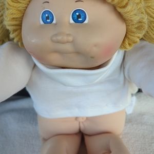This vintage Cabbage Patch Kids doll by Xavier Roberts is a must-have for any collector or fan of the iconic toy line. The doll features beautiful blonde curly yarn hair and striking blue eyes. It measures 16 inches in length and 10 inches in width, and is made from hard plastic, cloth, and yarn.