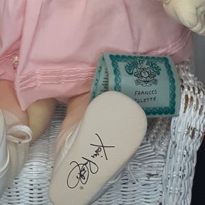 1984 signed blonde hair brown eyed. 24" high. Orginal clothing and pamper.