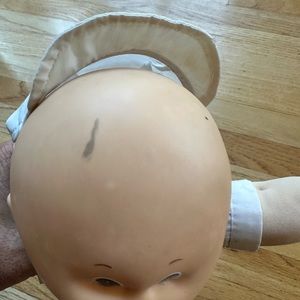 Cabbage patch boy doll. Has some marker marks on head and some stains on the outfit and snag on his back under the outfit from the Velcro. All shown in pics