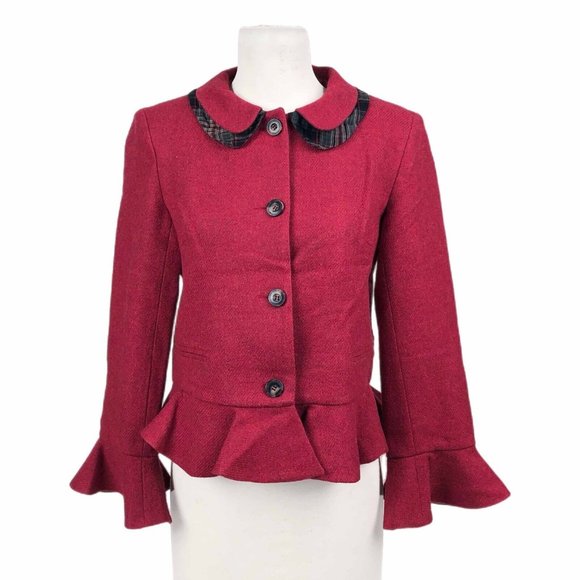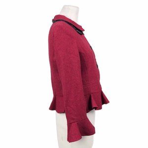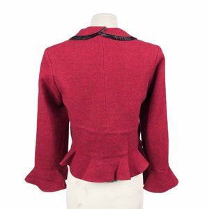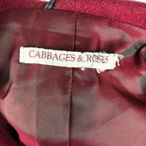 Cabbages And Roses Jacket Women's Medium Red Wool Coat Peplum Made In England