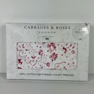 Cabbages & Roses Floral Pillowcases King Pink White Cotton Percale Set of 2 NEW