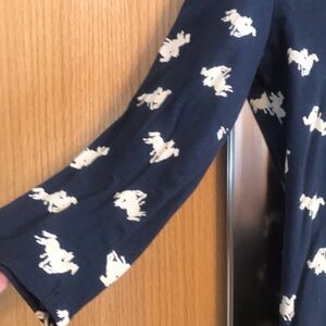 EUC 3/4 length sleeves. Darling galloping horses print. Round neck 100% cotton t shirt from Cabbages & Roses size Small. Blue with cream color horses