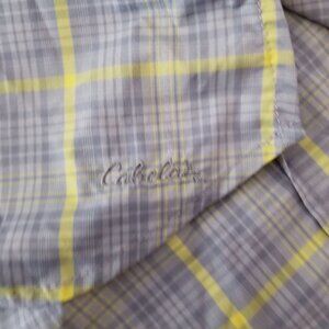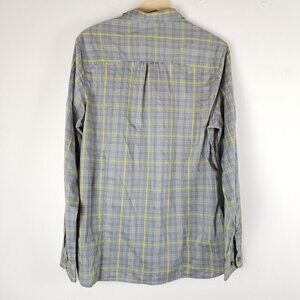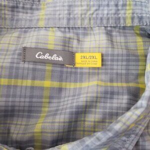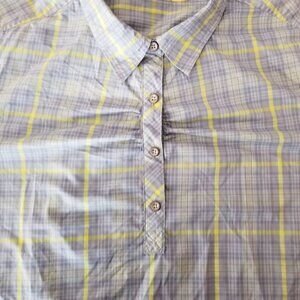 Cabela's 2XL Plaid Pullover Tunic Blouse Roll Tab sleeves Gray & Neon Green
