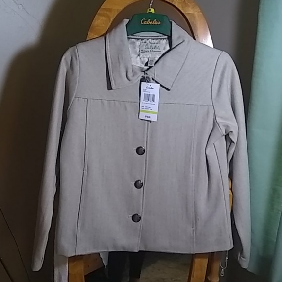 Desert tan light weight size medium wool jacket, hubby bought for me just not my style. Never worn tags still attached.