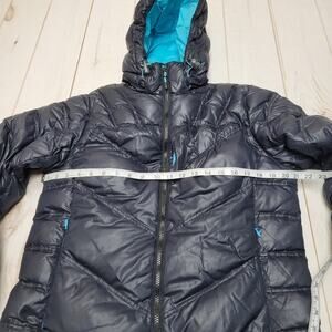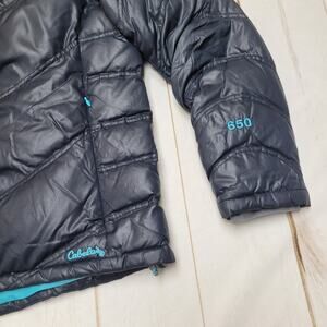 Cabelas 650 goose down puffer jacket winter coat hooded navy blue
