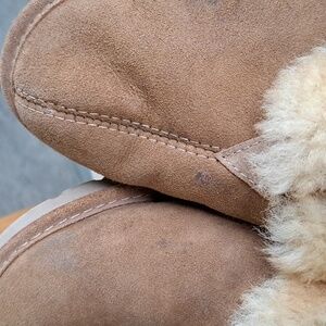 Girls, women's, short, warm classic suede ankle boots with nice fur inside. The top can be rolled up or down. Made from genuine Shearling. Has a few marks (see pictures). Otherwise, still in good condition.