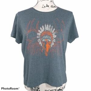 Cabelas Blue Crop Top Deer Skull Headdress Size L