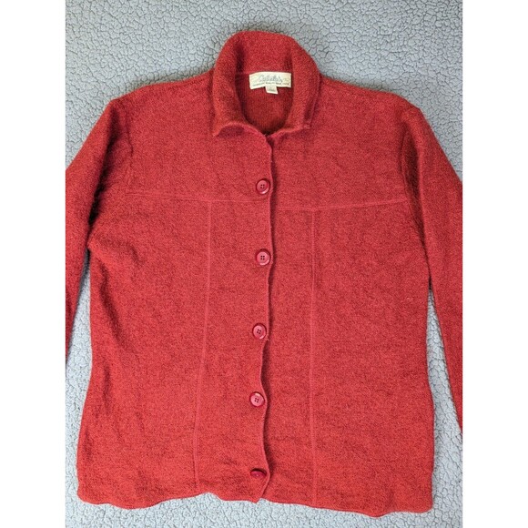 Cabela's Boiled Wool Cardigan Sweater Womens L Rust Red Button Up Pockets