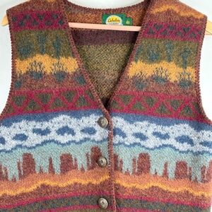 Cabelas Boiled Wool Sweater Vest L Southwestern Western Desert Boho Grandpa Fall