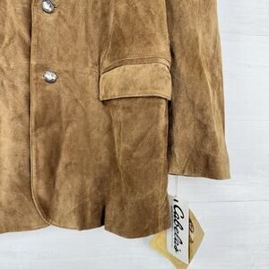 Cabela's Brown Leather Sport Coat Blazer Men 44 R Buffalo Nickel Buttons Suede