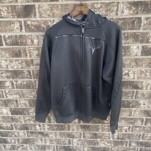 Cabelas Buck Logo Hoodie Medium Full Zip Black 1961 Hunting Outdoors Jacket