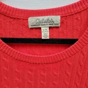 Cabela's Cable Knit Sweater Coral Orangeish Pullover Size XL