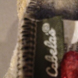 Cabela's scarf with a camouflage pattern. Features shades of green and brown. Soft and warm material.