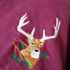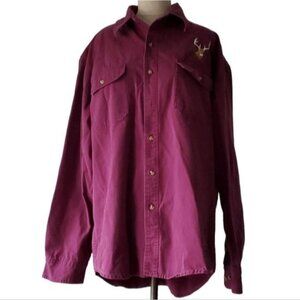 Cabela's Chamois Button Up Shirt Maroon Red 100% Cotton Deer Head Men's XL TALL
