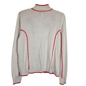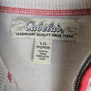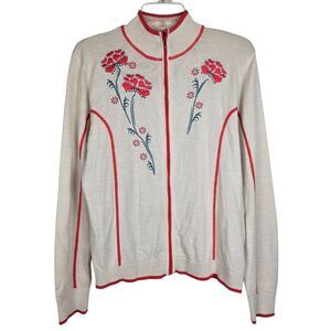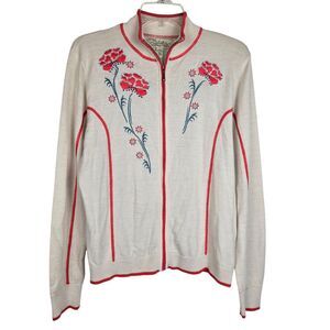 Cabela's Cream Orange Cardigan Sweater L Merino Wool Zip Embroidered Flower Boho