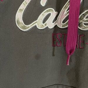 Cabela’s Dark Gray/ Pink Logo Thick Hoodie Sweatshirt