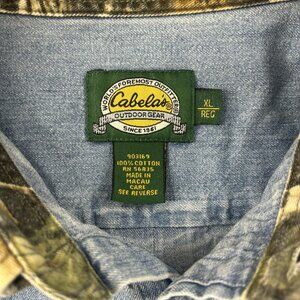 Cabelas Denim Shirt Mens XL Button Down Camouflage Collar Elbow Patch Hunting