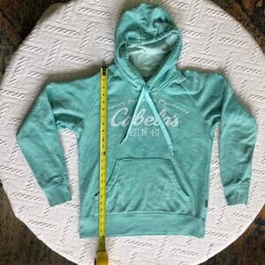 Cabela’s Embroidered Logo Hoodie Womens Small Teal Fleece Lined Gorpcore Outdoor