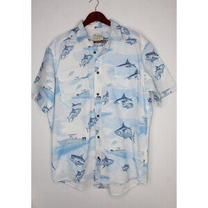 Cabela's Fishing Button Down Shirt Mens L Blue White Vented Relaxed Fit Athletic