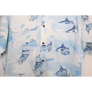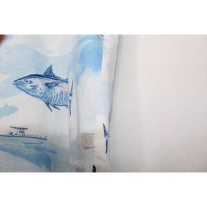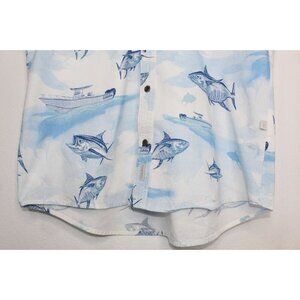 This Cabela's Fishing shirt is perfect for any fisherman looking for comfort and style. With a collared neckline and button-down closure, this shirt is great for any occasion, whether it be for travel, work, or casual wear. The shirt is made of woven cotton material and features an embroidered accent and pockets. It comes in a size L with a regular fit, measuring at 50 inches in chest size. The shirt is machine washable and perfect for summer, fall, and spring seasons. The shirt is also part of Cabela's Fishing product line and features a fishing pattern, making it a great addition to any fisherman's wardrobe.