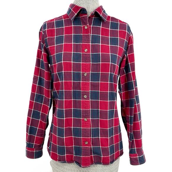 Cabelas Flannel Button Down Plaid Fall Winter Holiday Red Navy Blue Shirt Size M
