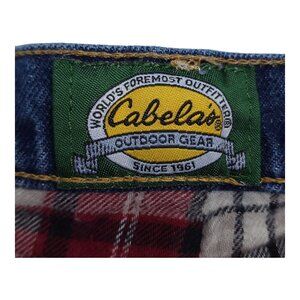 Cabela's warm and durable denim jeans with plaid flannel lining. Ideal for colder climates and outdoor activities, offering comfort and rugged style.
