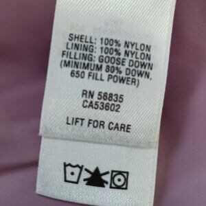 This vest is perfect for any outdoor adventure. It features a solid burgandy color with a quilted design. The shell and lining are made of 100% nylon and is machine washable. The down fill has a 650 fill power. The vest has zipped pockets for secure storage. The pit to pit measurement is 21" and the length is approximately 22.5" in the front and 23.5" in the back.