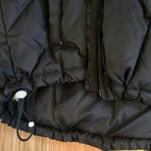 Two outer zip up pockets and one inside zipper pocket! Can tighten/loosen bottom hem.