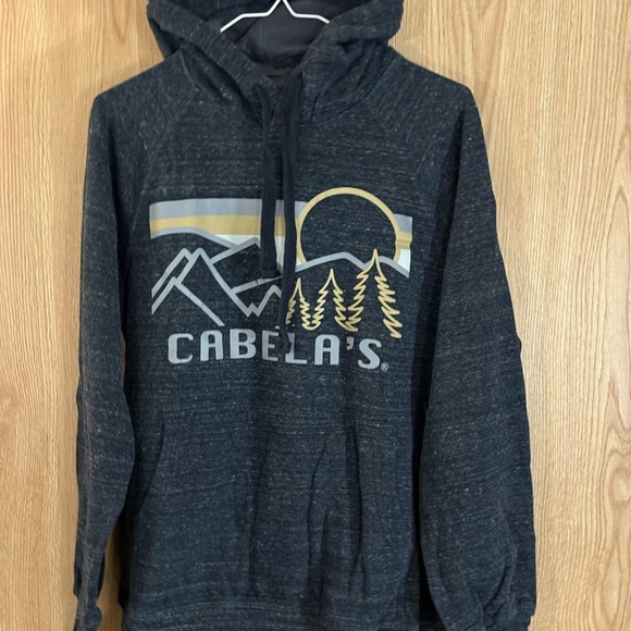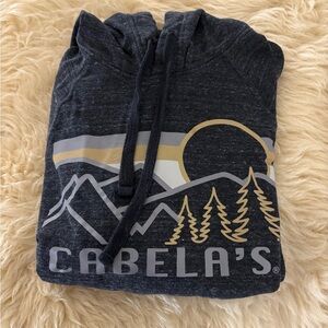 Cabela's Gray Fleece Lined Athletic Logo Pullover Hoodie Sweatshirt