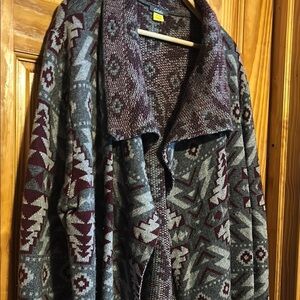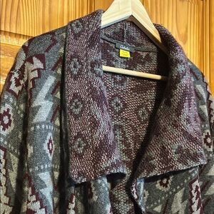 Cabela's Gray and Maroon Patterned Cozy Cardigan Sweater