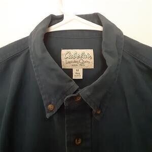 Cabelas Heavy Cotton Long Sleeve Button Up Blue Shirt Size Medium Outdoors