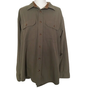 Cabellas heavy weight long sleeve men's button down top. Collar accented with a stylish corduroy material for that extra warmth. Olive green and brown.
