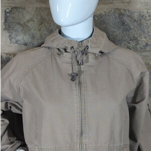 Cabela's Jacket Cotton Ripstop Hooded Tan Full Zip Woman's Size Large Neutral