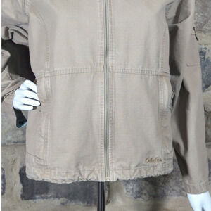 Cabela's Jacket Cotton Ripstop Hooded Tan Full Zip Woman's Size Large