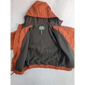 Cabelas Jacket Mens Large Orange Canvas Zip Up Hooded Lined Cowl Neck Winter