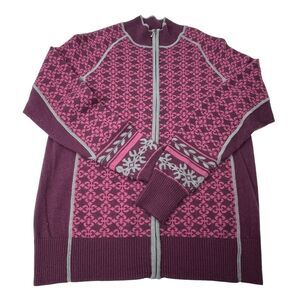 Cabela's Maroon Merino Wool Blend Nordic Zip Up Cardigan in size large.
