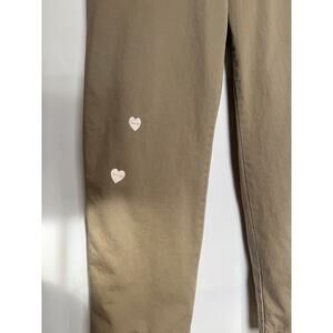 Good preowned condition. Two small, light areas of discoloration on front of pants leg. One frayed leg hem. See photos.