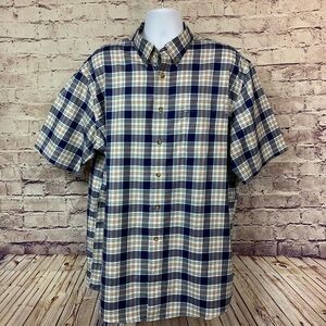 Cabela’s Mens Blue Plaid Button Front Short Sleeve Shirt
