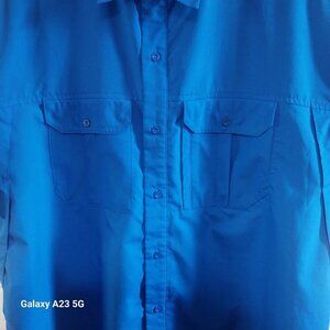 Cabelas Mens Blue Short Sleeve Button-Up Shirt XL Polyester Outdoor Wear