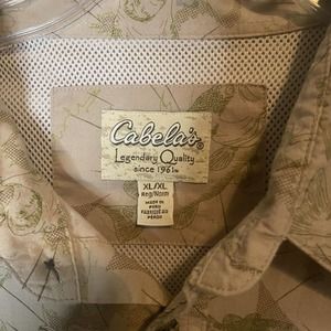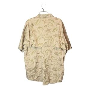 Cabela's Men's Button Up Shirt Size XL Vented Fish Print Tan Green