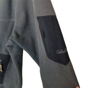 Cabela Mens L Gray Full Zip Sweater Jacket Fleece Lined High Neck Zip Pockets