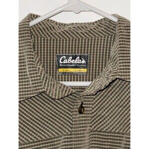 Cabela's Mens L Tan Striped Long Sleeve Button Down Shirt