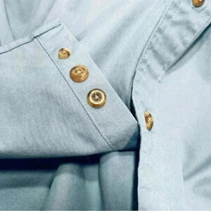 Excellent preowned condition Cabelas Men’s Light Blue Long Sleeve Button Down Shirt Outdoors Rugged Size 3X. Extra zipper pockets.