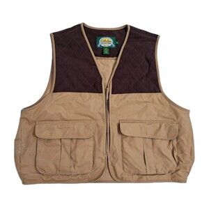 Cabelas Mens XL Hunting Field Cargo Vest Jacket Brown Khaki Zip Quilted Shooting