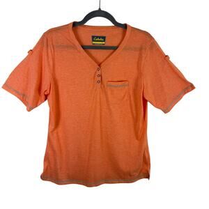 Cabela's Orange Short Sleeve V-Neck 1/4 Snap Cuffed Sleeve Lightweight T-Shirt L