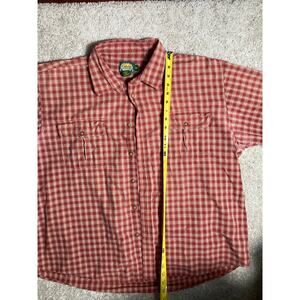 Get ready for your next outdoor adventure with this Cabela's Outdoor Gear men's button-up short sleeve shirt! In good pre-owned condition, this shirt features a classic red and white pattern with two front pockets.
