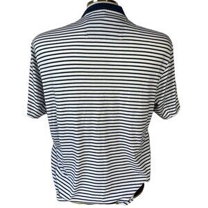 This Cabela's Outfitter Series polo shirt offers a classic striped design in navy and white, perfect for a polished casual look. Made for men, this shirt features a traditional collar and button placket, providing a comfortable fit with a touch of elegance, suitable for various occasions.