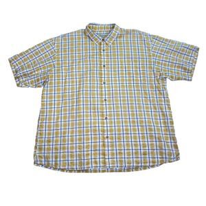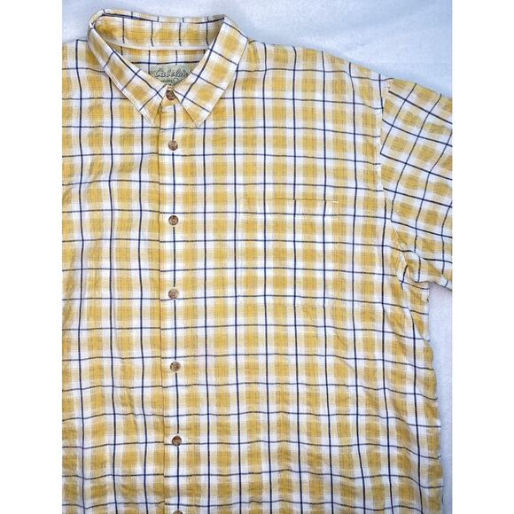 Cabela's Plaid Flannel Button Up Short Sleeve Shirt Men's Size Large Cotton