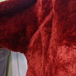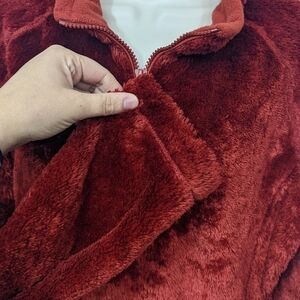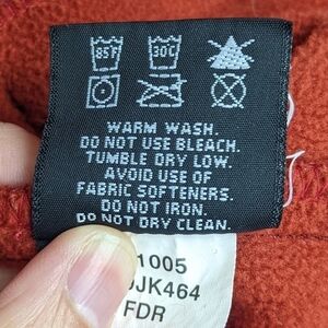 This pull-over is in gently used condition. It is a very warm top. It features Polartec lining. Has a front large pocket. The cuffs and waist are lightly fitted. Please see photos for details.